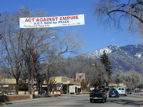 Small print says "Fire Rumsfeld! Peace Rally," March 19.