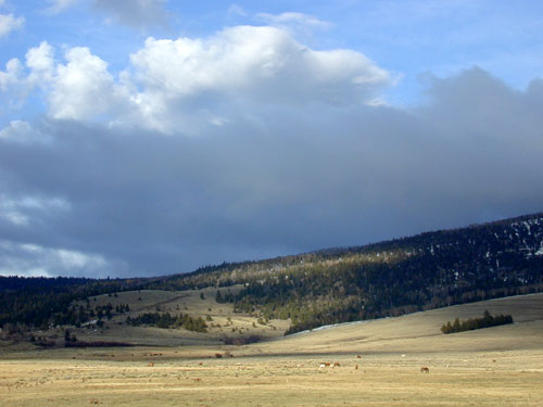 Horses in foreground, very tiny. Only a bit of the sky ...