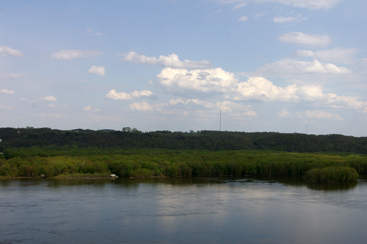 East bank of the Mississippi from Dubuque The dwelling visible here can be seen left center