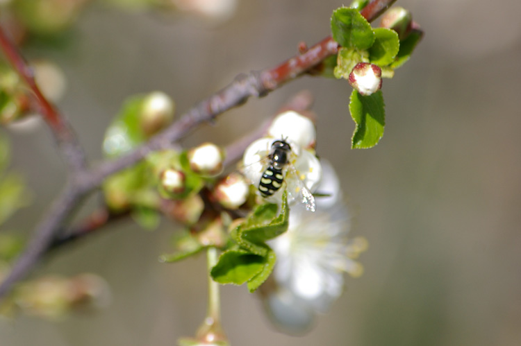 Bee (?) on wild cherry blossom False macro w/ telephoto lens
