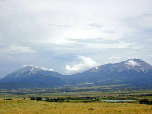 The Spanish Peaks in the late afternoon, near La Veta