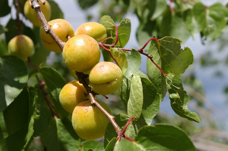 Apricots outside the front door "Wild" ones, and not yet ripe...