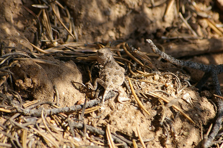 Baby horned toad from four feet away w/ telephoto lens See the pine needles? This critter is less than an inch long!