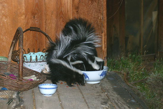 There are FOUR of these very young skunks in this picture!